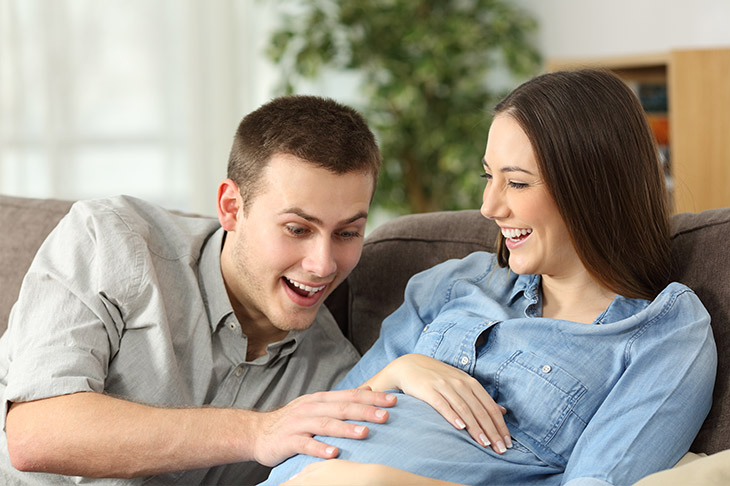 - Place hands on your abdomen, over the largest part, where you feel that your baby has moved.